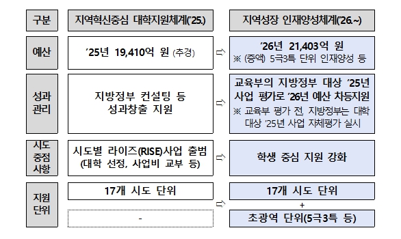 이번 방안은 지난 1년간 관찰된 한계를 보완하고 체계를 발전시켜, 5극3특 균형성장을 위한 ‘인재양성-취·창업-지역정주’ 체제를 효과적으로 조성하고자 수립됐다. 이를 위해 지역 내 예산 나눠먹기 등 부적절한 사업 운영을 타파하고, 지역학생과 인재가 체감할 수 있는 내용 중심으로 세부 사업을 재편한다. 또한, 지방정부 간 칸막이를 넘어선 초광역 단위의 인재 양성을 확대해 갈 계획이다.