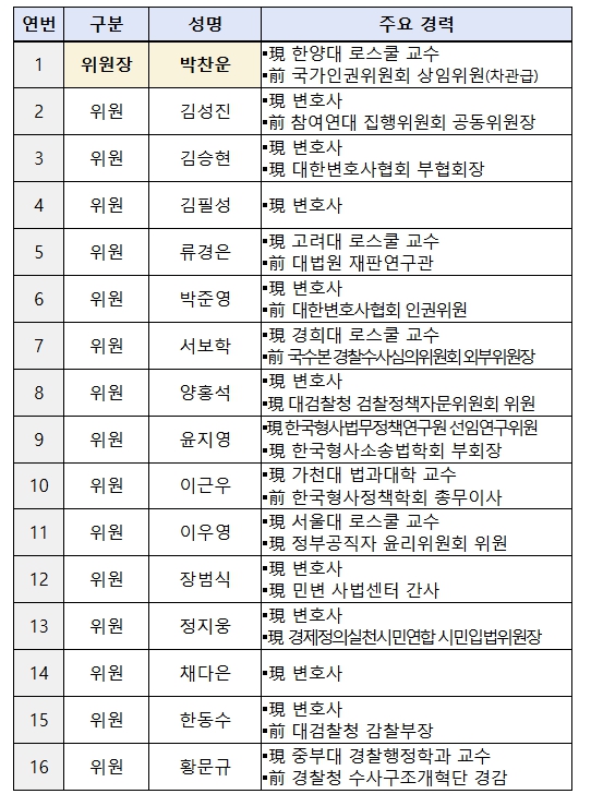 | ▲ 검찰개혁추진단 자문위원회 위원 명단 |