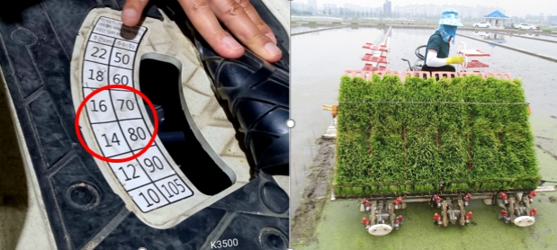 ▲ 사료용벼 모심는 간격(30 × 14~16㎝, 3,3㎡당 70~80주)