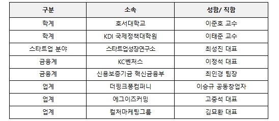 | ▲ 콘텐츠 기업육성을 위한 협의체(워킹그룹) 외부위원 |