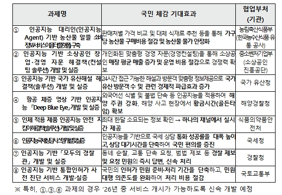 | ▲ 「인공지능 민생 10대 과제(프로젝트)」 중 공모 대상 8개 신규 과제 |
