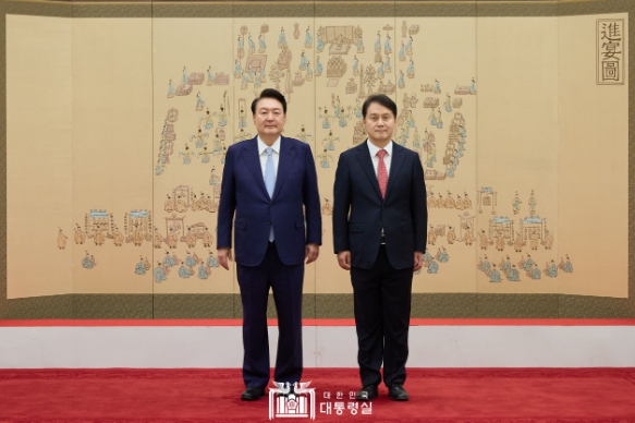 [뉴스힘=박노신 기자] 5월 10일 윤석열 대통령 용산 대통령실에서 김주현 민정수석비서관과 전광삼 시민사회수석비서관에게 임명장을 수여했다.