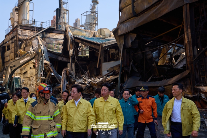 화재 현장을 둘러본 이 대통령은 화재가 빠르게 확산된 원인을 물으며 실종자 3명에 대한 수습과 함께 신속한 신원 확인을 지시했다.