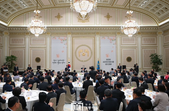 [뉴스힘=박노신 기자] 윤석열 대통령은 5월 12일 청와대 영빈관에서 전국 시군자치구의회 의장(회장 최봉환 부산시 금정구 의회의장) 199명(총 226명)과 오찬 간담회를 갖고 지역발전을 위해 노력하는 시군자치구의회 의원들의 노고를 격려하고 국정운영의 동반자가 되어줄 것을 당부했다.