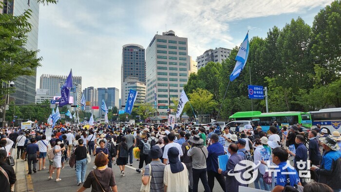 ▲ 8월 26일 오후 청계광장 입구 교차로 일대에서 후쿠시마 원전 오염수 방류 규탄 집회에 참석한 시민들