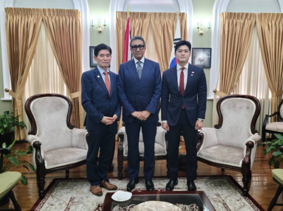| ▲ 김용태 의원과 트리비다드 토바고 하원의장 면담(좌로부터 주 트리니다드 토바고 대한민국 권세중 대사, Jagdeo Singh 작데오 싱 트리니다드토바고 하원의장, 김용태 의원) |