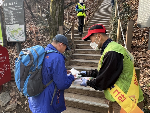 우선 매주 1회 산불예방 특별 캠페인을 실시한다. 구청 직원 20명이 2인 1조로 팀을 꾸려 2개 코스(수서역 6번 출구~구룡산 정상~구룡터널 인근, 수서역 6번 출구~불국사~대모산 자락길)을 순회하면서 등산객에게 산불예방 홍보물을 배부한다. 홍보물에는 산림 내 흡연·화기 사용의 위험성과 위법행위에 대해 관계기관에 신고를 당부하는 내용이 담겨 있다. 또한 주요 등산로 입구에 산불예방 현수막을 설치하고 진화장비를 점검한다.