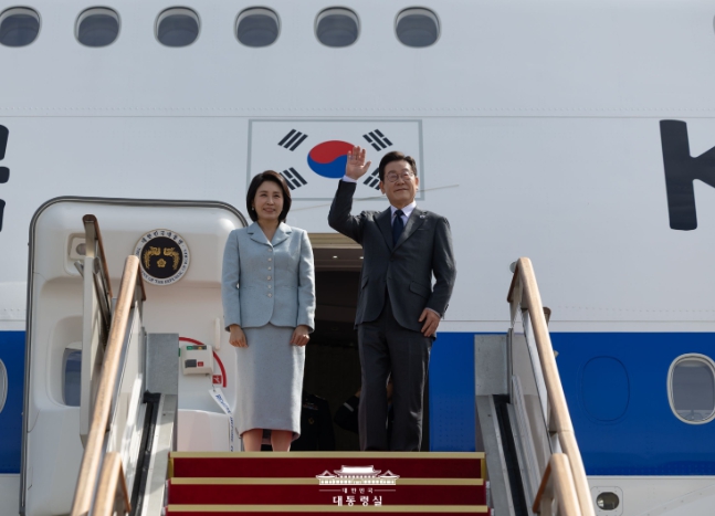 [뉴스힘=박노신 기자] 이재명대통령이 탑승한 공군 1호기가 미국 뉴욕으로 출발했다.