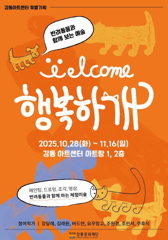 [뉴스힘=박노신 기자] 강동문화재단은 오는 10월 28일부터 11월 16일까지 강동아트센터 아트랑에서 반려동물과 함께 예술을 경험할 수 있는 전시 《행복하개展》을 선보인다.