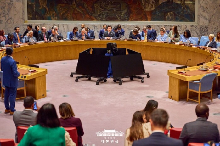 이 대통령은 지난 24일(미국 현지시간) 대한민국 대통령으로서는 최초로 유엔 안전보장이사회(이하 '안보리') 의장으로서 안보리 공개 토의를 직접 주재하며 이같이 언급했다.