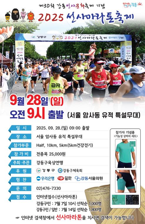 이수희 강동구청장은 “올해 선사마라톤 축제는 안전한 코스로 준비해 참가자와 주민 모두가 안심하고 즐길 수 있는 축제가 될 것”이라며, “이어지는 제30회 강동선사문화축제에도 많은 관심과 성원을 부탁드린다”라고 말했다.