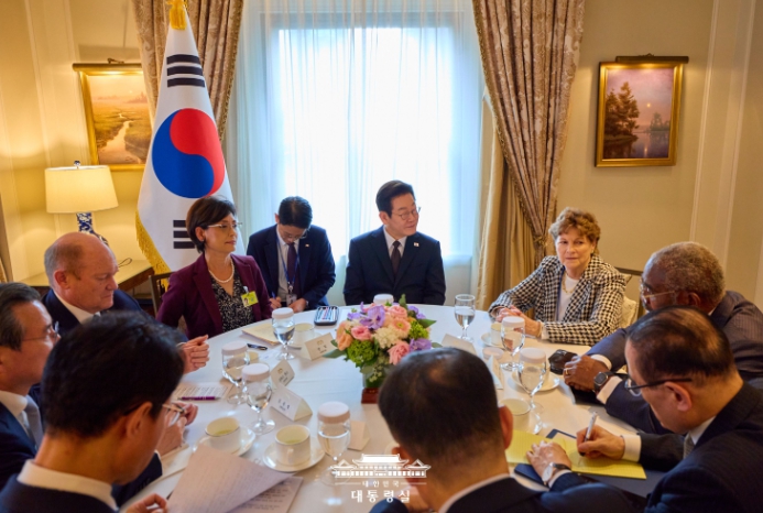 [뉴스힘=박노신 기자] 유엔총회 참석 차 미국을 방문한 이재명 대통령이 22일(현지시간) 오후 뉴욕에서 미 상원 외교위 및 하원 외무위 소속 의원 4명을 접견하고, 한미동맹 강화, 한미 경제협력 확대 및 한반도 문제 등에 대해 의견을 교환했다.