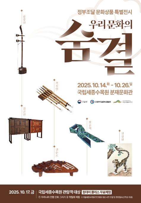 [뉴스힘=박노신 기자] 조달청은 국립세종수목원, (사)정부조달문화상품협회와 함께 10월 14일부터 10월 26일까지 국립세종수목원 분재문화관에서 정부조달 문화상품 전시, 전통문화 체험 등을 즐길 수 있는 ‘우리 문화의 숨결’ 특별전시를 개최한다.