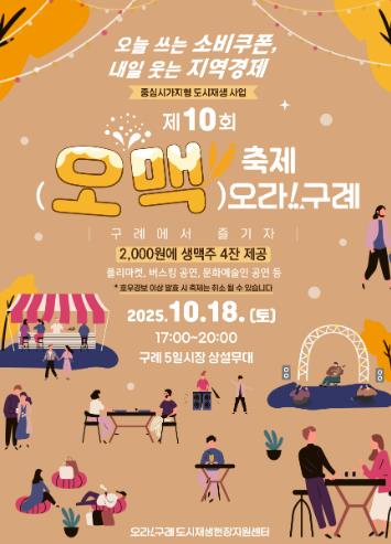 이번 축제는 ‘오늘 쓰는 소비쿠폰, 내일 웃는 지역경제’라는 슬로건 아래, 지역 상인회와 청년점포, 주민협의체가 함께 참여하여 지역민과 관광객이 어우러지는 가을밤의 상생축제로 운영된다.