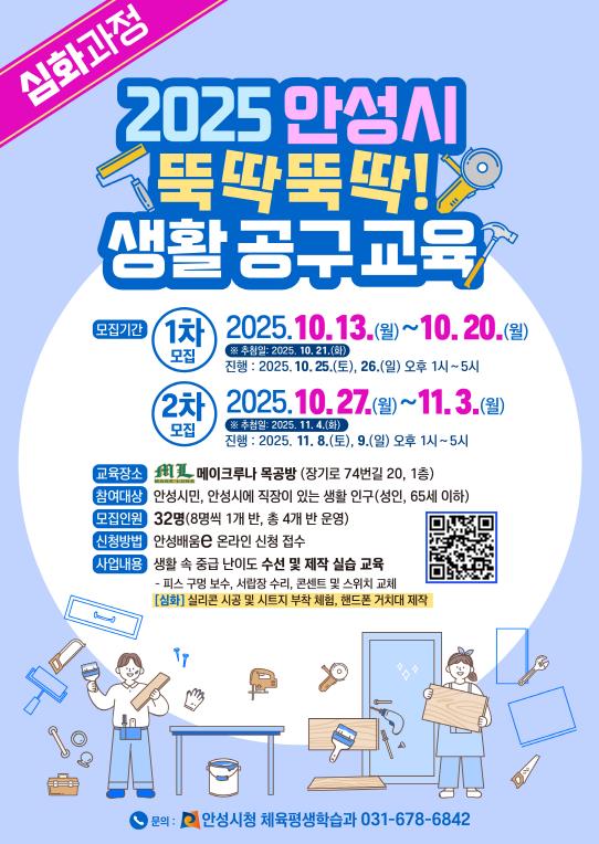 | ▲ 안성시, 생활 기술 한 단계 업! '뚝딱뚝딱 생활 공구[심화과정] 교육' 참가자 모집 |