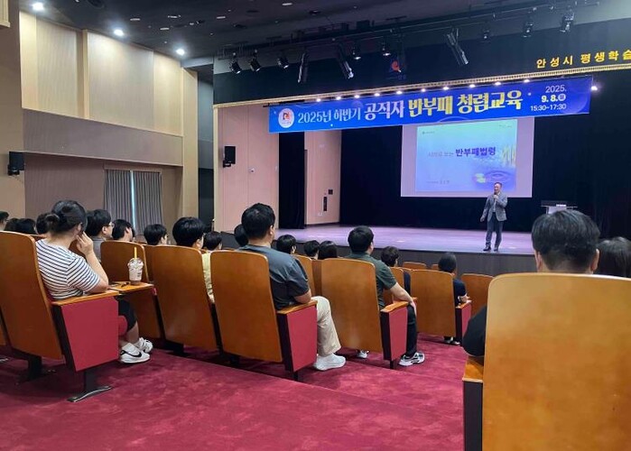 [뉴스힘=박노신 기자] 안성시는 지난 8일 신규 공직자 및 승진자 140명을 대상으로 ‘2025년 하반기 공직자 부패방지 및 청렴 교육’을 실시했다.