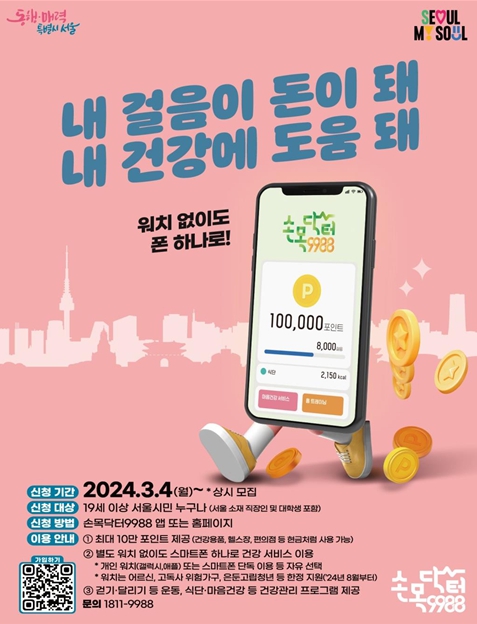 서울시는 ‘손목닥터 9988’ 사업에 19세 이상 서울시민 누구나 스마트폰만 있으면 참여할 수 있도록 시스템을 개선하고, 오는 3월 4일부터 참여자를 모집한다고 밝혔다.