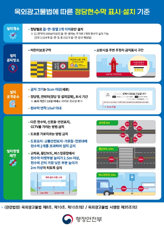 위반 현수막이 확인되면 자진 철거, 이동 설치 등의 시정 요구를 하고, 요구 미이행 시 지방자치단체에서 철거한다는 방침이다.