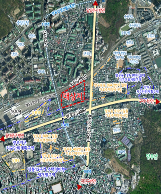 ▲ 위치도(중랑구 신내1동 493-13번지 일대 모아타운)