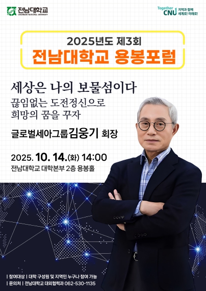 9일 전남대학교(총장 이근배)에 따르면, 오는 10월 14일 오후 2시, 국제회의동 2층 용봉홀에서 ‘2025 제3회 전남대학교 용봉포럼’을 개최한다.