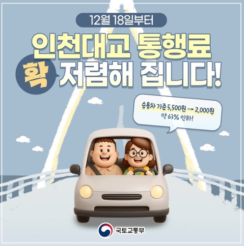 [뉴스힘=박노신 기자] 12월 18일부터 인천대교 통행료 확 저렴해 집니다!