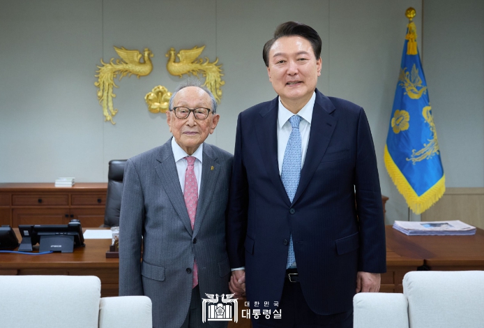 [뉴스힘=박노신 기자] 윤석열 대통령은 4월 3일 용산 대통령실에서 김형석 연세대학교 명예교수와 오찬을 함께했다. 대통령은 2021년 3월 검찰총장 퇴임 후 김 명예교수를 방문해 대화를 나눈 적이 있으며, 평소에도 김 명예교수의 저서 ‘백년을 살아보니’ 등을 읽고 존경심을 밝혀 왔다.