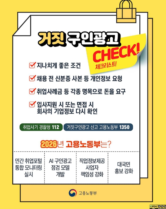 [뉴스힘=박노신 기자] ■ 거짓 구인광고 체크리스트!
