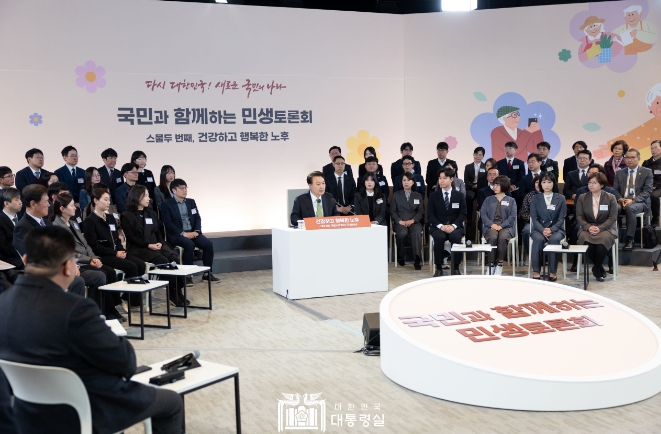 [뉴스힘=박노신 기자] 윤석열 대통령은 3월 21일 강원특별자치도 원주시 건강보험심사평가원에서 ‘건강하고 행복한 노후’를 주제로 스물두 번째 '국민과 함께하는 민생토론'를 개최했다. 이번 토론회는 주거, 식사, 의료, 돌봄 등 어르신의 삶과 밀접한 정책 과제를 논의하기 위해 마련됐다.