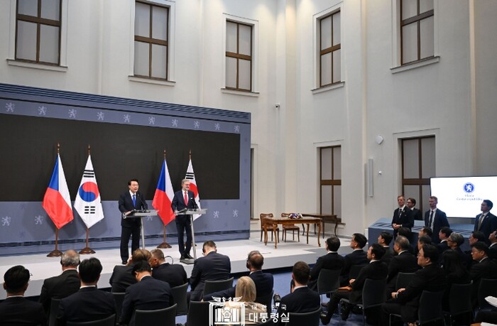 | ▲ 9월 20일 윤석열 대통령은 페트르 피알라 체코 총리와 함께 공동언론발표를 했다. |