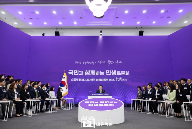 | ▲ 3월 25일 윤석열 대통령은 경기도 용인특례시청에서 ‘대한민국 신성장동력 허브 용인특례시’를 주제로 스물세 번째 「국민과 함께하는 민생토론회」를 개최했다. |