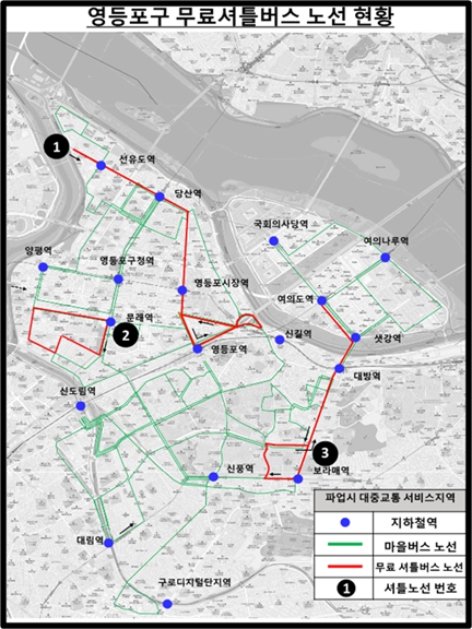 | ▲ 영등포구 무료셔틀버스 노선 현황 |