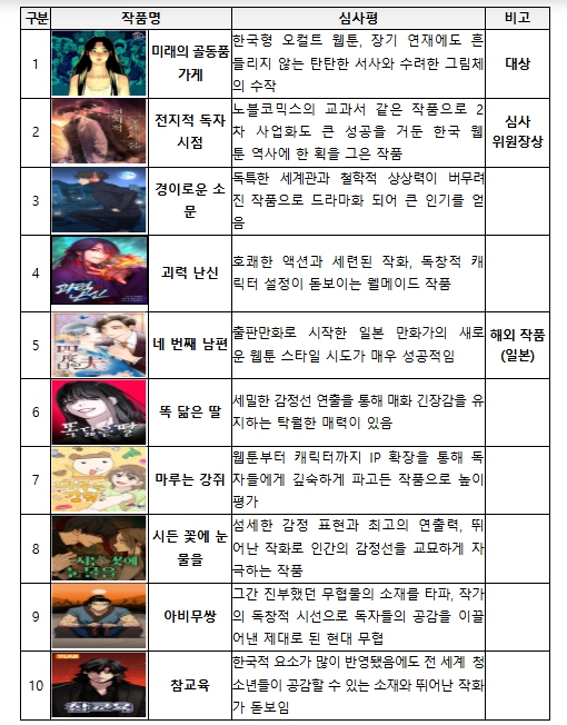 | ▲ 2025 월드 웹툰 어워즈 수상작 목록- 본상 수상작 |