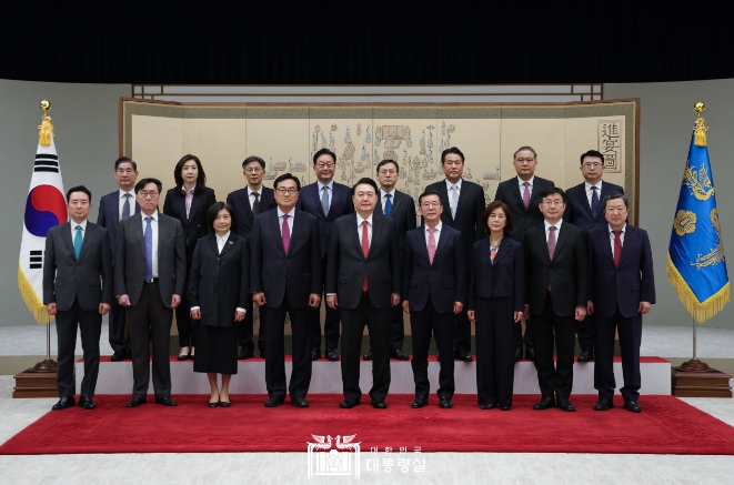 [뉴스힘=박노신 기자] 4월 24일 윤석열 대통령은 용산 대통령실에서 정진석 비서실장과 홍철호 정무수석에게 임명장을 수여했다.