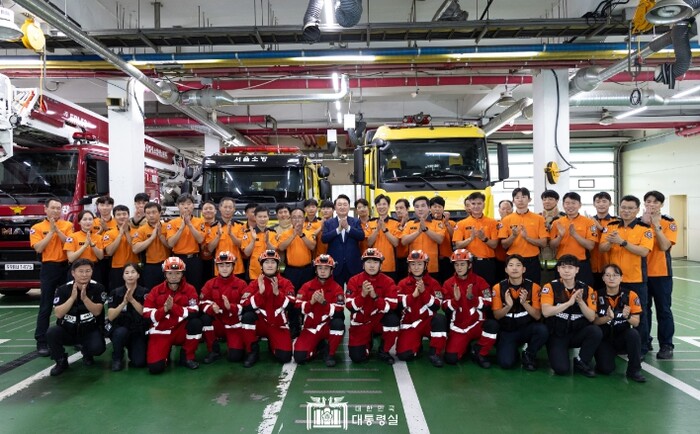 대통령은 서울시 소방안전지도를 보면서 서울시, 구청 등과 CCTV 네트워크를 만들어서 함께 운용하는지, 소방 차량 캠이 어떻게 활용되고 있는지 등을 꼼꼼히 챙겼다. 이에 이 서장은 “서울시, 구청 등과 협조해 국민의 안전을 위해 24시간 깨어 있다”고 답했다.