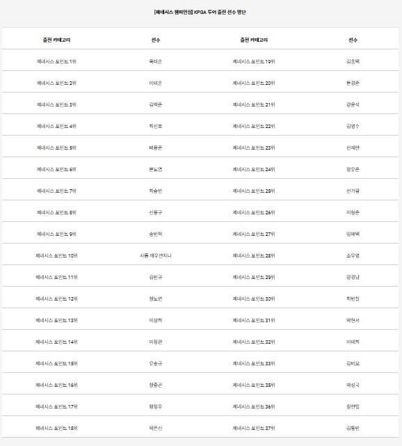 | ▲ [제네시스 챔피언십] KPGA 투어 출전 선수 명단 |