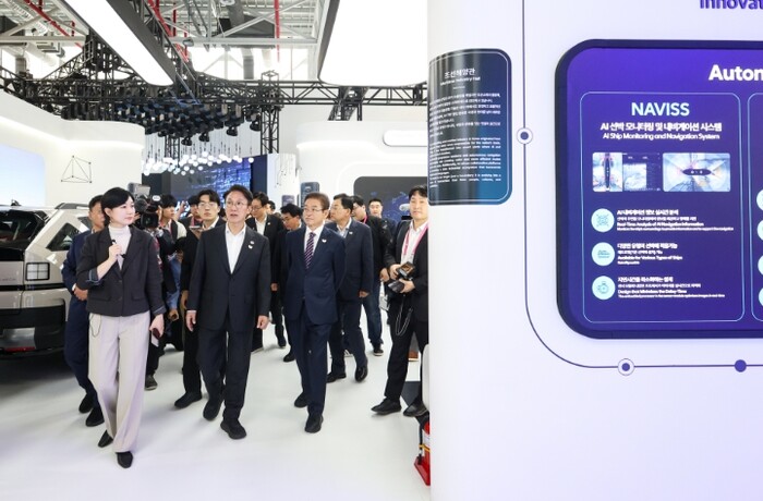 | ▲ 김민석 국무총리가 23일 경상북도 경주시 엑스포공원에 마련된 APEC 정상회의 경제 전시장을 방문, 시설을 둘러보고 있다. |