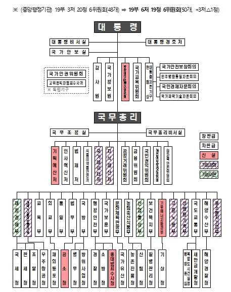 이번 개편은 정부조직 전반에 국정 철학과 비전을 반영하고, 정부가 제대로 일을 할 수 있는 정부조직 체계를 구축하는 것을 목표로 했다.