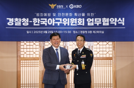 [뉴스힘=박노신 기자] KBO와 경찰청(청장 직무대행 유재성)은 지난 9월 29일(월) 경찰청에서 업무 협약을 체결했다.